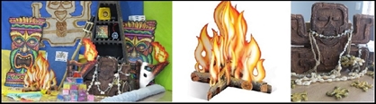 2 décors feux et 2 torches enflamées cartonnées